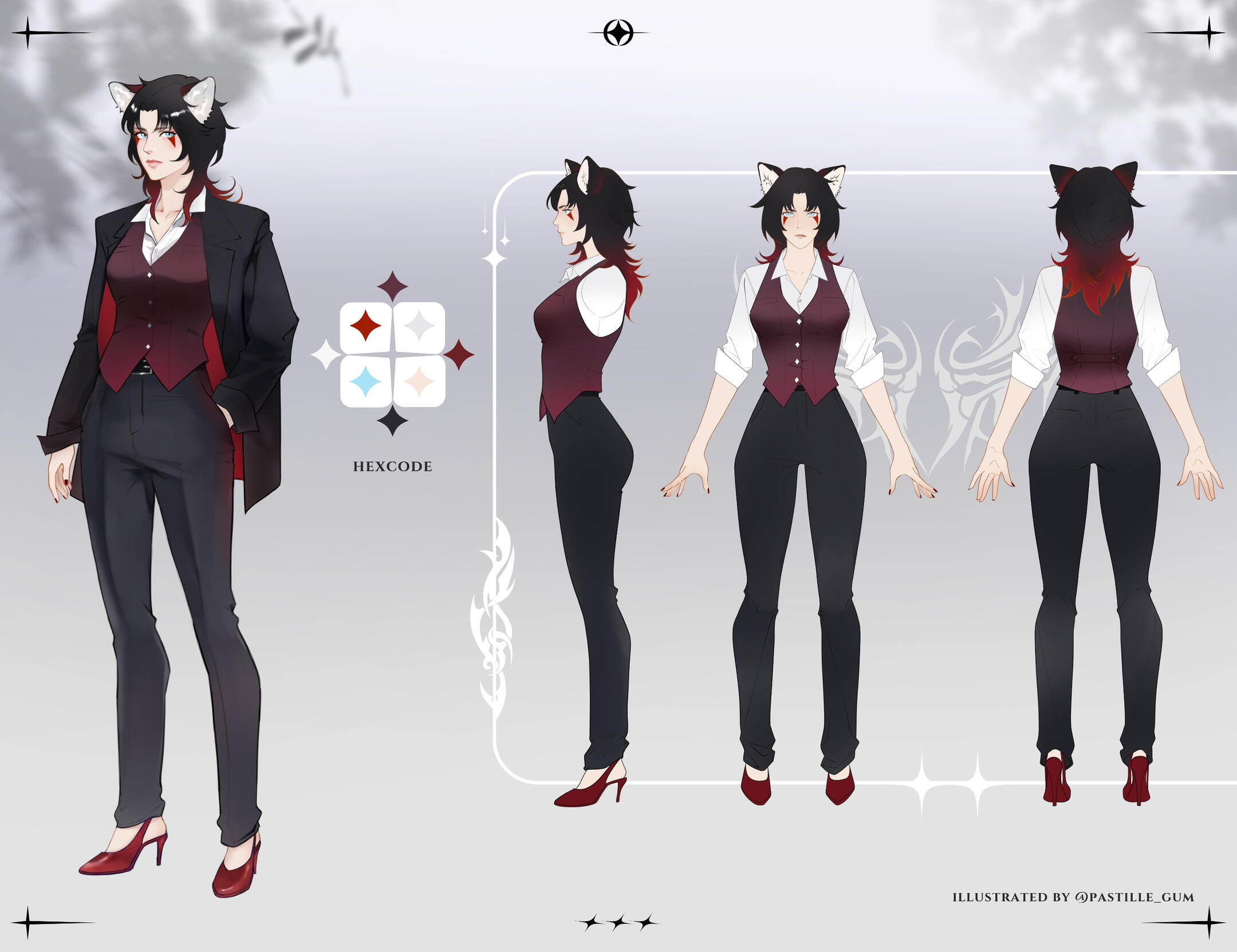 | Reference Sheet | • front, back, side view • expression and pose variation • price may increase by complexity • the more details you submit, the better i can get your vision |